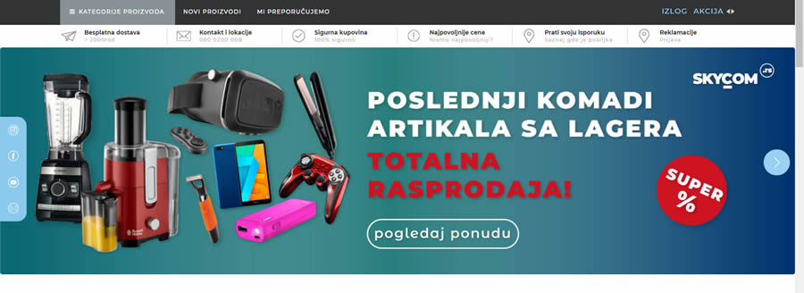 SKYCOM, najmlađi član SKY CORPORATION Int. poslovnog sistema, nastao je sa idejom da ujedini prepoznatljivi SKYMUSIC brend, kao vodeći u muzičkoj industriji u zemlji i regionu, sa novom ponudom uređaja, koja podrazumeva najbolje od tehnike, uređaja za kuću i kompletnu dodatnu opremu.